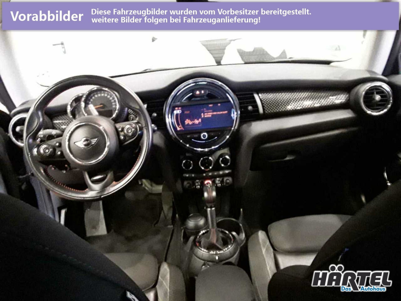 GetriebeAutomatikgetriebeAusstattungspaketeAusstattungspaket Chili: EXCITEMENT PAKET, AblagepaketAssistenzsystemeFernlichtassistent, Einparkhilfe hinten, Fahrlichtautomatik, Tempomat, Sprachbedienung, VerkehrszeichenerkennungLicht und SichtLED-Scheinwerfer, LED-Tagfahrlicht, Regensensor, Automatisch abblendender Innenspiegel, Privacy-Verglasung, Leuchtweitenregulierung, Ambientebeleuchtung: Fußraumbeleuchtung vorn, LED-NebelscheinwerferAudio & KommunikationNavigationssystem, Radio, Digitaler Radioempfang DAB+, AUX & USB Anschluss, MINI Connected, Handyvorbereitung Bluetooth: TelefonvorbereitungKomfortKlimaautomatik, 2 Zonen, Fahrer-/Beifahrersitz höhenverstellbar, Lordosenstütze Fahrer/Beifahrer, Sitzheizung Fahrer/Beifahrer, Sportsitze, Armauflage Fahrer/Beifahrer, Servotronic, Keyless, Start-Stopp System, Zentralver. mit Fernbedienung, Fensterheber elektrisch 2-fach, Mini Driving ModesInterieurSitze Teilleder Grau/Schwarz, Innenfarbe grau, Multifunktions-Sport-/Lederlenkrad, Bordcomputer, Optikpaket Interieur: CHROME LINE, Gepäckraumboden doppelt, Rücksitze klapp- und teilbar, Laderaumabdeckung, Lenkrad-SchaltwippenExterieurLeichtmetallfelgen 17 Zoll, Außenspiegel elekt. und beheizt, NotrufsystemSicherheitISOFIX Kindersitzbefestigung, Fahrer- /Beifahrerairbag, Kopfairbag vorn und hinten, Seitenairbag vorn, Traktionskontrolle, Elektr. Stabilitätsprogramm ESP, Reifendruckverlust-Warnung, Wegfahrsperre, Außentemperatur Anzeige, Antiblockiersystem ABSWeitere AusstattungAdaptiver Geschwindigkeitsassistent, Ausstattungspaket Wired, Color-Line Carbon Black Interieur, Fahrradträger, FrontAssist, Fußmatten vorn u. hinten, Lautsprecher vorn u. hintenVerfügbarkeit: sofort. Zusätzlich zum Fahrzeug erhält der Käufer 1 Jahr Gebrauchtwagengarantie vom Volkswagen-Versicherungsdienst, sofern das Fahrzeug nicht bereits über eine mit dem Fahrzeug verbundene Garantiezusage des Herstellers von mind. ein Jahr verfügt. Hiervon ausgenommen sind Käufer, die einen Fahrzeughandel betreiben bzw. das Fahrzeug in einem Land außerhalb der EU zulassen.Nichtraucherfahrzeug, ehem. UPE des Herstellers: 34.950,--, Finanzierungsbeispiel: Anzahlung: 1.600,00 EUR Nettodarlehensbetrag: 14.200,00 EUR Monatsrate: 180,62 EUR bei 60 Monaten Laufzeit, Schlussrate bei 10.000 km/Jahr: 6.478,00 EUR, Gesamtbetrag: 17.315,20 EUR, effektiver Jahreszins: 5,99 %Sollzins: (gebunden) 5,83 %Bank: Bank 11.Nichtraucherfahrzeug, ehem. UPE des Herstellers: 34.950,--, Finanzierungsbeispiel: Anzahlung: 1.600,00 EUR Nettodarlehensbetrag: 14.200,00 EUR Monatsrate: 180,62 EUR bei 60 Monaten Laufzeit, Schlussrate bei 10.000 km/Jahr: 6.478,00 EUR, Gesamtbetrag: 17.315,20 EUR, effektiver Jahreszins: 5,99 %Sollzins: (gebunden) 5,83 %Bank: Bank 11. / Hersteller des Fahrzeuges: Mini (Bayerische Motoren Werke Aktiengesellschaft Adresse : Petuelring 130 80809 München - Mail: minikundenbetreuung(at)mini.de - Telefon: 089 125016060, Nähere Details und weitere Bilder finden Sie unter: www.auto-haertel.de. - Wir bitten Sie, bei Kontaktaufnahme die Fahrzeugnummer bereit zu halten., Irrtümer und Änderungen vorbehalten